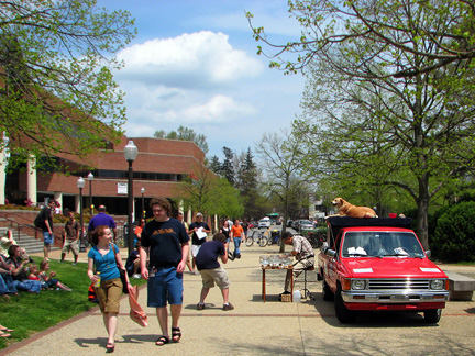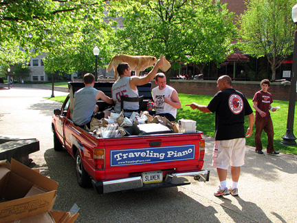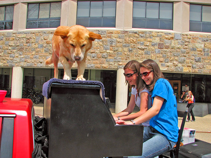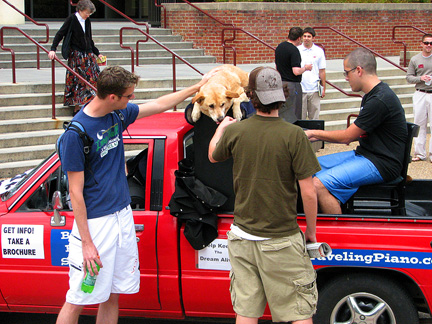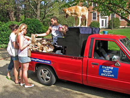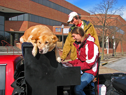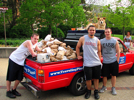 Cintinued From Yesterday ... This is my 4th post on Virginia Tech in telling the story of how the gun slaughter at the school helped to shape my journey. Care packages were being sent to the school from all fifty states for all those who survived. The student government had free reign on what they wanted to do, so all restrictions were off concerning how the Traveling Piano was used. The truck was loaded up several times from large cartons full of goodie bags and we drove through the campus wherever we wanted to go with guys in the truck throwing out packages to friends an colleagues all day long. It was a great distraction, totally unusual and lots of fun! Every time the truck emptied we would stop and people would jump on to mess around with musical notes. Continued...