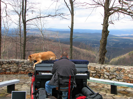 Mo and I drove to the Redrock Overlook today. Summer is done, thank God! It has been a while since being out in nature. We did not go for a walk but did spend some time with the Traveling Piano and others who were around. And... the time was not too long in consideration of my stamina and Mo's not being about to move around on top of the piano. Not accepting tips is becoming more difficult but... I must play this journey out to the end. Those that send contribution when I ask or just to support, it is they that matter to me. One guy wanted to give me ten bucks and he tried to push for me to take it. I said if you really want to support, do it online. They never do because that just takes effort. Well, the effort is what I need most. What I give is effort. I know all about how it works with money. How could I not after all these years? I also know all about unconditional giving and sharing and the power in that example. It cannot be matched.