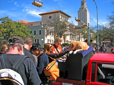 It was dark when I was driving into Blacksburg, Virginia which I knew nothing about. The feeling was different from everywhere else. It was cleaner with more care and more welcoming. I realized it was a college town and that was why. Then, I realized the college was Virginia Tech. The year before, while spending time in New Orleans after Hurricane Katrina, a significant bond had been created with students I met there who were helping out with the cleanup and to lend support. So of course I had to stop by the Student Government building the next day on the way out to play some music and say hi to everyone. It was a huge and wonderful spontaneous and synchronistic reunion. The students gave me a Virginia Tech tea-shirt and candy to continue with on my way as I headed down into Mexico. The dog in the pictures are of Boner. He was the first dog in my life, a dream manifest from age five. Mo is Bo's spirit reincarnate. Continued...