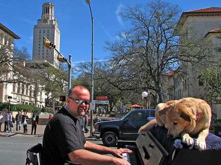 In 1966 as a result of republican voting life long NRA American gun indoctrination... a shooter got a gun and took to the towers of a University of Texas building in Austin where he randomly slaughtered 15 people walking on the street including an unborn child and injured 31 others for life. While passing through Texas with the Traveling Piano in 2007, I had no idea about this or that I had unknowingly stopped with the Traveling Piano at the very spot where several people were gun slaughtered. Do you know how I learned about this? Several people told me so and how they are living with the gun shootings still.