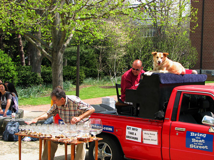 I invited them to connect with the Traveling Piano saying I could drive them through the streets playing and they were all for it but... I know most likely none of them will followthrough. Young kids not wanting to jump on an opportunity like that I will never understand. Mo was up and about and walking all around the entire time. He went in and out of the store next to us and they had no problem with that. But, I was worried because of his back legs and age. He could not just chill for the entire day. I sold two photos during the entire time, whoopee. What a waste of energy that part was. Now I know as I've always suspected that vendors make little if any at this event. And I've always wondered, why do they setup up and even pay? Its mostly all kids in their teens and early twenties just gathering to hang out. Food vendors probably do ok.