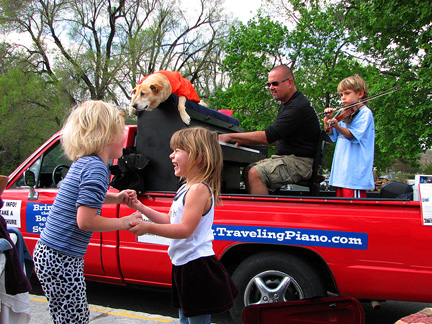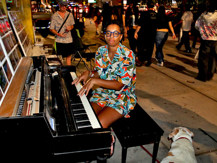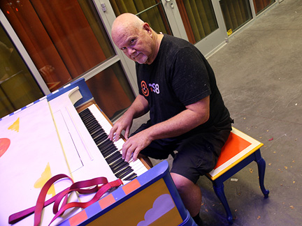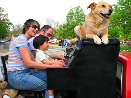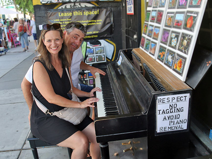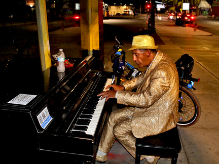 What an interesting day. I went to check on the Fremont street piano. It was stolen. I thought luckily it was the worst piano but it still hurt a little. I know the guy that probably did it. Later, I was walking Mo up Main street to check on one of the other Community Traveling Pianos and this neighborhood guy I know was playing on it. From a distance I could see him sitting and wondered where he got the seat as the bench has been gone for about three days. It was the original bench and I asked if he knew where it came from. He said some crack addict must have taken it and he found it in the back alley. I know people and said back to him, don't be hiding the bench just for yourself, it is for everyone to use.