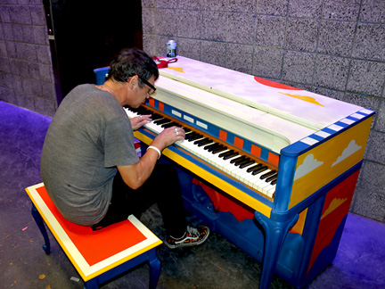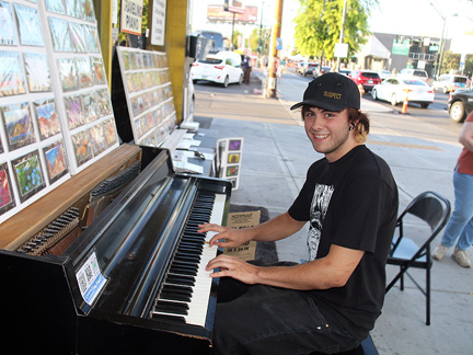 Mo and I setup for First Friday tonight where one of the Community Traveling Piano's are set. We began setting up at 11am. The setup was stress free, took about three hours as I thought, "how are you going to have the energy to keep going until 11pm and then tear it all down?" A volunteer came to help for a few hours and she was great except that she only wants to connect via email for future help and did not want to give me her phone number. I had to set it straight form the start that if she cannot trust me with her phone number while she has all my information well, I need a mutual exchange of trust or I can't use her help. I'm not into dealing with anyone who is super sensitive and secret about their live's for whatever reason. From past experience, that is a no win situation for me. Once the event got going, the noise level was insane. Lots of people stopped to play and there were about six good young Las Vegas piano players we met with!
