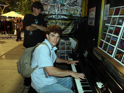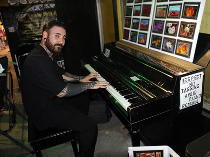 ... It was a decent spot totally out of the way and hidden. I discussed what he thought about leaving it there except the trash around it needed to get cleaned up. He began to clean up the trash. Then he said I'll help you roll it back up the ally and we did. Once it was back in place, the business had reopened and I went inside to see if they knew anything about it. The guy said he wondered if I had a GPS on the piano as I arrived five minutes after it was taken. And then he described the guy who took it along with a two others who had helped. The piano taker was the red haired guy. I went back outside and said "I know you took the piano." He said he had been playing it for hours (that is what the store employees also said) and was torn between playing in public for the attention verses by himself in a corner, so he said. He thought it would be fun to move it around. I said that would put it out of tune. (next entry...)