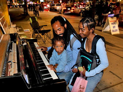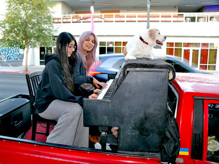 It was First Friday, a monthly celebration on the streets of Downtown Las Vegas and now that the weather is better the place was packed... with kids. Wow, I am getting old! While walking around checking on the five Community Traveling Piano's that are out on the streets, I am finding that they all are in need of tuning. That will be a constant issue. They are reaching the point of musical notes not being distinguishable. The piano's are now being used in movies. I came across a film crew using one and the actor was banging the shit out of it in an anger scene. My thinking was not quick enough to tell them if they are going to bang the piano out of tune they need to pay for a tuning. People in general do not respect public property and also do not think about how a piano gets destroyed and also, do not realize the piano's belong to me along with all the responsibility that goes along with that.