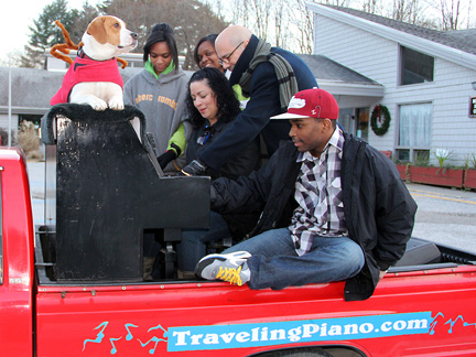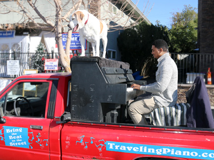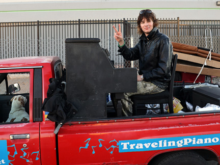Learning how to incorporate people who want to help into my life which is desired and appreciated but it is very time and energy consuming... well, I was going to take tomorrow off and then realized this is not going to happen. Last night I did just collapse from exhaustion and decided to sleep until I got enough rest today. Please contribute again and again and encourage others to do the same. I want to keep the Traveling Piano alive until the end of next year. That would make 40 years of full time work with the truck and piano. I am loving it all. Who would think that at 70 years of age I could still do all that I can do. It is because of friends who support my passion for other people and life and of course... Mo helps big time even though he is falling apart from age, we could not be more tight in spirit together.