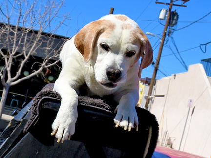 Mo's tooth fell out last night. It is an inch long! I've never seen a dogs full tooth like this. I think it will become a relic. He has an ear infection and after I did a cleaning, he went crazy with shaking his head. It was ready to fall... We both live in the present moment. He can walk less and less and is now beginning to feel a bit down about it but, his love stays strong and he still enjoys life. No longer can I move the truck with him in the parking area without checking that I do not run over him. If he falls, he cannot get up nor tell me. Our roles in life have reversed. As he used to come up to me to greet and wake me up every morning. I now do that to him. When we walk, he used to run ahead and needed to stop all the time to check how far behind I was and wait if necessary. Now, that is the opposite as I walk and constantly check back on him as he follows and stops to sniff every few feet.