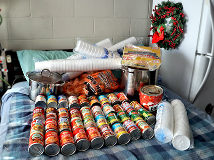 I have created a warm and secure nest of nostalgic peace, fun, joy, gratitude, love and care. My room is filled with Christmas past, present and future. I have been able to find over the last few years the 1st Christmas music box my parents ever gave to me (one every year since 10 yrs old) and then there are porcelain stars my best friend Gertrude had given to me, presents from neighbors and friends... I gave away literally "everything" I owned when I sold my house for this journey... that included 40 years of Christmas decorations mostly given to me as gifts. There is no chance the holidays are not going to be a success now along with creating music with people on the Traveling Piano and working my ass off getting food, cooking it and sharing it with people on the streets. And then there will also be a truck full of wrapped presents to give out. Help? Make a contribution.