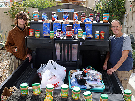 Ace came back to help me today and we made a large case of peanut butter and jelly sandwiches. I had hoped to finish off my supplies but realized I have so much it will take at least two more trips out. Then we wrapped Christmas presents all day for those living on the streets. It was dark by the time we got out to share the sandwiches and I drove through the streets while Ace played on the piano. I though, if this keeps up we will be like the ice cream man. People will know the foods coming. I has been many years since I did this with the truck in the dark and the first time ever in 40 that I have been driving around with someone else randomly playing. I do not have to worry about speed and many other aspects as much because Mo is not on top, He hangs out with me in the cab usually laying because sitting is difficult with his back leg joints no longer very operable.