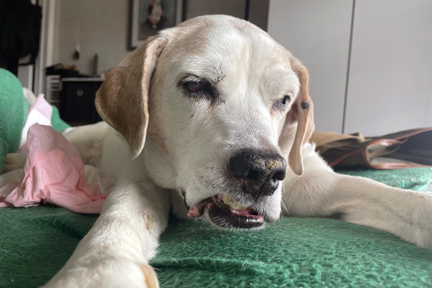 In some moments I can't believe Mo is leaving. He has been my security blanket and is fading away. He has stopped eating, is drinking less and less and he can no longer hold himself up to pee. Although, he still licks my hand, responds positively to ear and back rubs, has yawned and drinks and looks at me with true love and enjoys cuddling more than ever. I will always be amazed at how tender he is as a dog, I've never experienced such tenderness before. He has little pain as he is on pain meds. I turn him from side to side every few hours as he looks out into the beautiful sunny days to enjoy. I've been using puppy pads for the bed. Did you know they are not pee proof? Ugh.