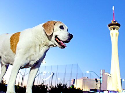 I felt compelled to go create music for a short while. Mo and I hid behind a wall in a large empty parking lot around the corner from our place where there was shade. I was feeling scuzzy as I had not taken a shower so interacting with people was not on the agenda. Although, on some level I was jonsin' to interact with people. The sun was setting. People walking down the street could hear the music from a half mile away at the Stratosphere Casino. Two guys visiting Las Vegas found us in total awe of the synchronistic discovery. One guy lives where Mo came from, in a small West Virginia town called Berkeley Springs. It was a home base for this journey for about eight years. The other guy was from Richmond Virginia where I had my first overnight gig with the Traveling Piano back in 1989. Small world, eh? I played music for about a half hour and interacted with them for about 15 minutes. That knocked the energy out of both Mo and I.