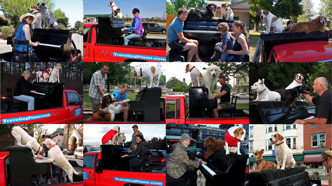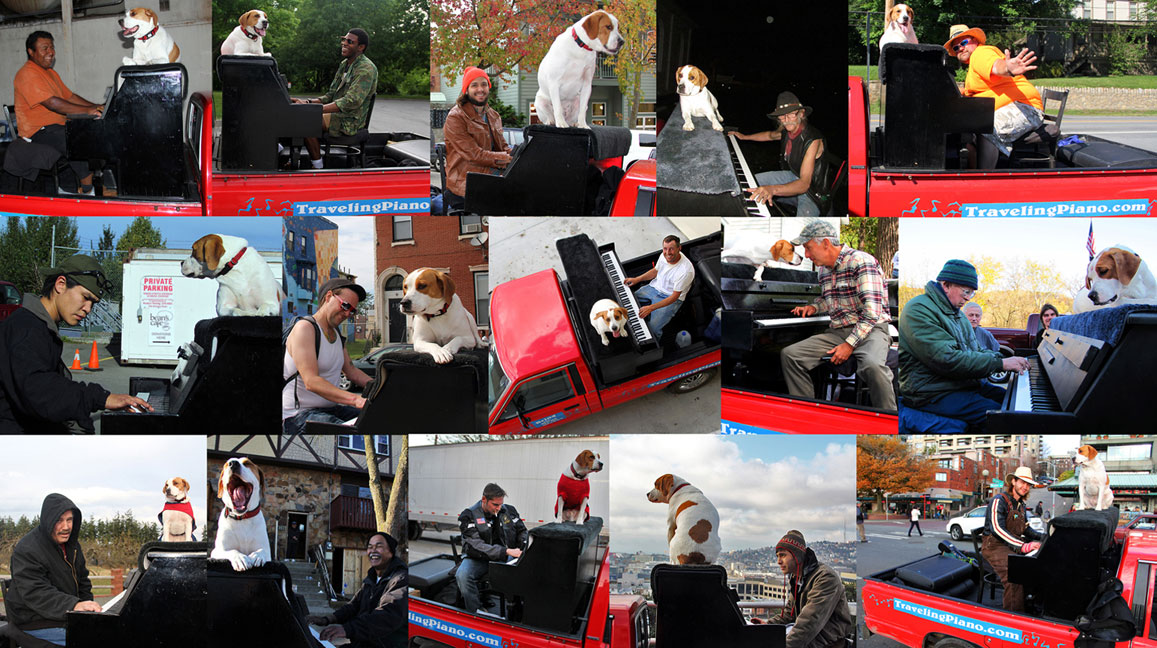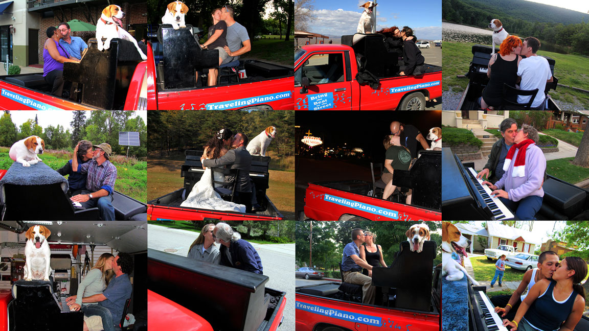 From the start in 1987 Piano Man Danny Kean, that would be me, I have worked with a piano in the back of the same truck along with two pups, Bo-ner who stayed with me for over 15 years and now Mo who has also passed his own 15 year mark in age. My two pups have served as faithful companions while hanging out on top of the Traveling Piano and giving comforting joy to everyone they meet. Concerning age, in July of 2025 I will turn seventy years old! Ahh... time rolls on.