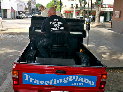Here are two fun Traveling Piano Man Danny Kean facts. I am the first person ever to entrepreneurially create a paid full time career of legitimate piano playing solely outdoors. That was for the first twenty years on the back of a pickup truck and now... I am also the first ever to continue that musical career outdoors for almost twenty more years. This, with no fees, tips or commercial affiliation and as a philanthropist, out of choice.