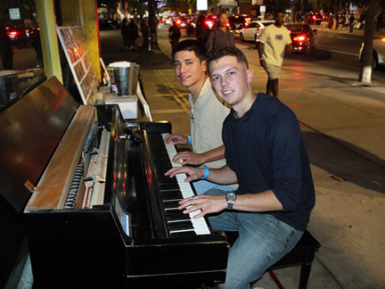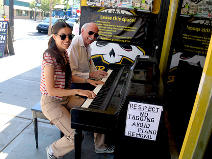 When I moved here, the area was a drug invested, homeless, run down pit with no sidewalks and the streets were a mess. That was less than ten years ago. Now its filled with locals and visitors shopping and having lunch during the day while the money crowd comes out for dining. Later at night the 20's and 30's crowd comes out dressed stylishly for the bars and clubs. I'm usually the oldest person on the streets and when I see how people dress, act and move I feel like someone in the early 1900's walking around in the modern world. Thats... crazy for me. The place is hopping with activity. I thought about being out with the Traveling Piano in that environment and wonder if it would be perceived as out of date.