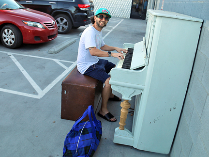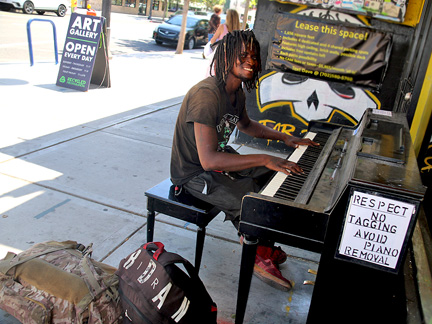 I was walking to check on one of the six Community Traveling Piano's on the streets of Downtown Las Vegas and I saw a wild kid throwing himself around as he smashed a bottle against a brick wall while screaming in anger. And then I saw he was walking in the direction of one of the piano's up the street as I thought about him attacking it. I just knew he was going for it. He reached the corner where the piano was as I thought, oh shit! I walked faster to get to the spot before anything happened. When I reached it, he was sitting at it playing calmly. He was using it to calm himself down just for a few minutes and then he got up and went on his way feeling much better. How awesome is that!