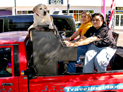 From the start in 1987 Piano Man Danny Kean, that would be me, I have worked with a piano in the back of the same pickup truck along with two pups. Bo-ner was my first dog ever who stayed with me for over 15 years and now Mo, he is heading towards the 16 year mark. My two pups have served as faithful companions while hanging out on top of the Traveling Piano giving comfort and joy to everyone they meet. Concerning my own age, in July of 2025 I turned seventy years old! Ahh... time rolls on.
