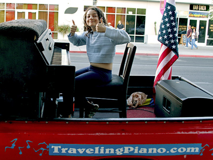 To date there has been over 100,000 one-on-one personal and intimate encounters with people from all walks of life on the Traveling Piano. Everyone is invited to take a seat at the piano for themselves in order to create music, especially if they have never before played on a piano, do not think they can play or have been psychologically damaged from music lessons, lol. People are empowered and inspired resulting in musical freedom of spirit every time.