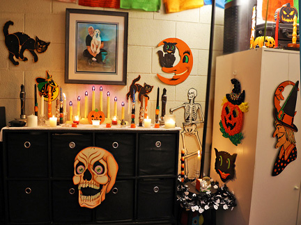 My original Halloween Beistle cutouts from the 1940's and 1950's are in my top ten favorite things to enjoy in life. It is amazing how I have given things like this collection away and then they come back. With these cutouts I gave them away twice and here they are in my life again! They were first given away when I gave up my house and then again when I had to leave what I thought would be a permanent home base. As a young boy, I could not feel more excited than when my mother brought out the Halloween box every year. These Halloween goodies are helping me to get through the days. They make me feel good with nostalgia surrounding me and the safe, warm, fun and good feelings of them