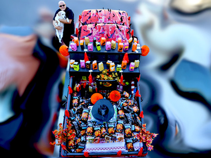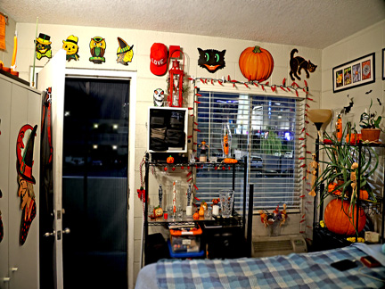 It completely escaped me that I've a huge amount of work to do for Halloween which is only two days away. Even though its all around me it feels like I just forgot. And physically, I am feeling totally weak. I just must believe and have faith from past experience that I can do this. I've food and decorations to get out of storage to fill the truck. Need to go shopping for water and whatever else I can get to take out on the streets and need to set it all up in the truck. The food I have needs to get transferred into Halloween bags that I have. I spent the day just taking it easy and photographing the Bestile decorations on my wall and filing what I have in a data base. The amount of joy I am getting from my wall cutouts and candles is immense. I need to transfer that joy into working with the Traveling Piano for Halloween for those living on the streets. This is what I want to do.