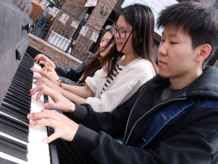 I ran into three guys last night at one of the five acoustic Community Traveling Piano's I put out onto the streets. I am still amazed they are working and still exist. I mean, since June! It was the middle guys 21st birthday! Our musical experience all around, was a treat. They are buddies that go to UNLV and are golf management majors? Everytime I put a chair at one of the piano's someone steals it. That is making me mad as I am sure it is the same person. More so, it is aggravating. I'd like to have a seat so I can sit and play on it and don't have the energy to put into not having a chair stolen everytime I put one there. The other piano's... no problem.