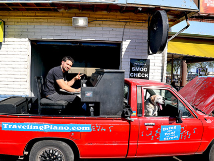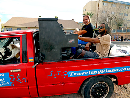 It took for ever to get around to registering the Traveling Piano truck for this year. Knowing there is a grace period for late registration felt good until, I found out there is no longer a grace period. On top of that, the state charges a late fee daily now. Shitheads. I was holding on hoping the smog test would pass. It did not so, I had to go back to last years guy to fix it just long enough to pass. $$$$. So, there was the registration fee, late fee, two smog test fees and fee to fix it long enough to pass. Total $357.50 The first smog test guy, I had told I would share the Traveling Piano with him when we were done. He charged me $30. The entire time I was interacting with him I was distracted with thoughts of "please don't charge me the money for a failed test" but as is with the Traveling Piano... I promised him the experience so... it is what it is and he charged me. Same with the smog adjustment guy... it was cash so please give me a break. Nada. Although, if it was in any other state I would never have passed the inspection needs they demand to register a vehicle. That is one "really" good thing about Nevada. The smog test is the only inspection needed. This is crucial because, nothing on the dashboard works, the front window is cracked and held on with duct tape and much more.