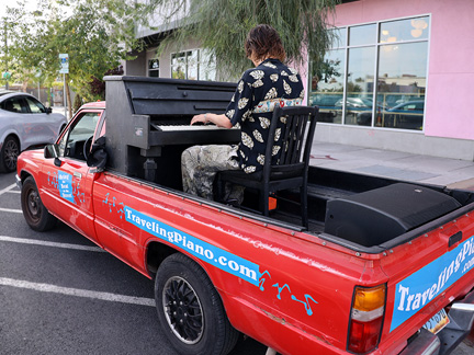 Well, the Community Traveling Pianos are dwindling. Seven pianos obtained and put out onto the streets in "june" 2025, it is truly amazing that any are still working! They have been respected and protected. Too bad I could not find anyone to help with upkeep. So many people from all walks of life have been enjoying them twenty four hours a day. But alas, what to do when they can no longer create any music. Someone took one at a suggestion of mine and put it outside their bar on Fremont Street and it is now being used as a cactus planter, lol! As I have said many times... love never dies it simply transforms. I want to saw another apart and use its makings as art pieces. Have just not found the energy to do that yet.