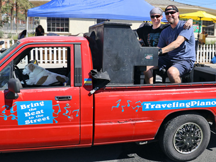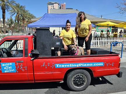 Our friends at Pawsitive Difference Pet Rescue had an adoption event today here in Las Vegas and so of course Mo and I were there to lend our support with the Traveling Piano. Mo stayed in the truck cab as he can't stay on the piano for any length of time. Those days are gone. The day was perfect. At this time of the year the sun is not so hot. Once the warm weather comes, the temperature can be bearable but the sun is still too strong. Especially for my bald head and Mo's age. He walked around a little and we spent about two hours interacting with people just walking by on the street as well as attendees.