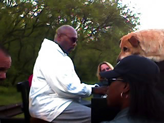 .... today I traveled to Hamilton NJ, Veterans Park. It had a nice wood elevated walking path through the woods so I was able to get our daily walk done while we were there. Bo's entire body vibrated with restraint on top of the piano as he watched a groundhog munching away in the grass about two hundred feet away. After about forty minutes of emptying my mind of various psychotic thoughts through musical performance, two carloads of kids who were playing volleyball nearby drove off with all thumbs up in the air through their car windows.