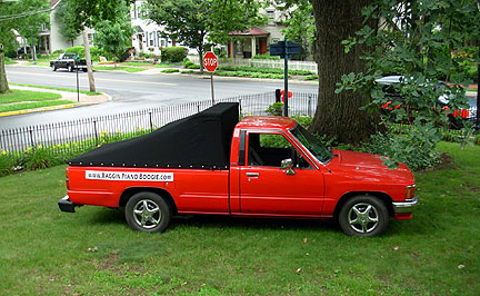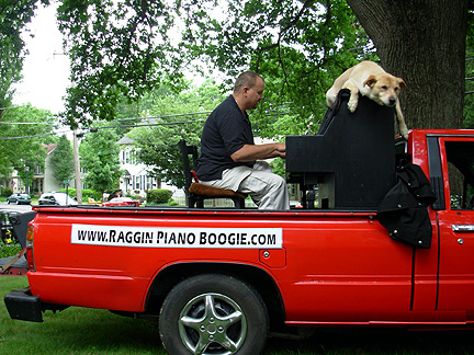 .... my first official performance experiment day I go to the park along the Delaware river in PA. After I finish playing and a humongous black guy gets out of his dark grey cruiser and slowly walks over to me. He says, "man you just saved my marriage, my wide and I drove in here fighting and ready to call it quits and we were jarred by what we saw... we stopped yelling at each other, turned off the truck and just sat in silence listening to you. When you were done everything was ok, thanks alot". He was also a piano player. His wife came over, he jumped on the Raggin' Piano Boogie truck and began to play.