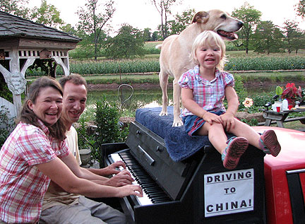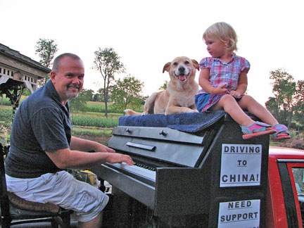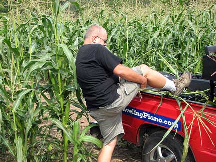 I drove by a house that had a satellite installer sign out front so I pulled in the driveway to pick the guys brain about communication while in China. International internet satellite service is price prohibitive for me. While at the house I met his wife, daughter and grandson. We had a fun, Traveling Piano experience. I live for these experiences. Back on the farm Charlie cooked dinner as he has been doing nightly, what a fantastic support he is. Between the two of us we ate about 15 ears of fresh picked corn from the field, just picked a half hour before. I don't really like corn on the cob unless its really good. Charlie's corn is REALLY good! He's getting ready to sell the corn for the first time by putting ads in local paper classified sections, going around to farm stands etc... He's is very excited about it. I wish I had time to join him in the adventure. Focus, Danny.
