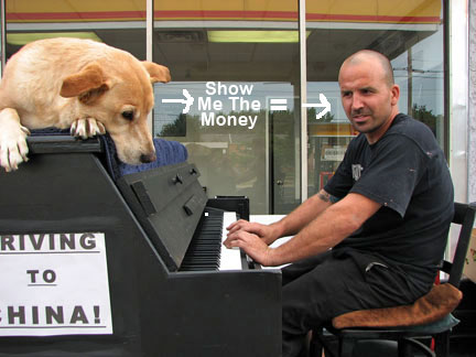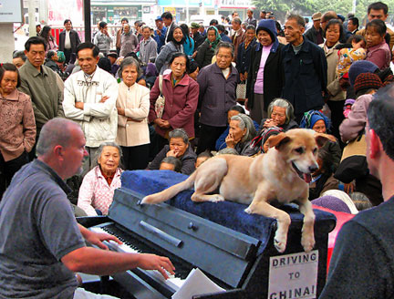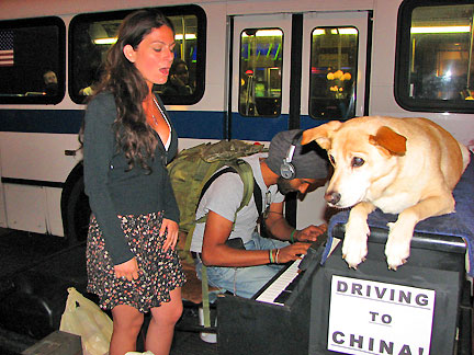 New China facts... I looked into freight boats to ship the traveling Piano in a container where I could also be a passenger with Boner. My cost as just a passenger is about the same as an plane ticket. China does not except vehicles into the country over twenty years old. That is a problem for the Traveling Piano. The quarantine issues for animals are so strong in Beijing that the Olympic events that uses horsed were set up in Hong Kong. Countries without rabies are stricter with quarantine issues. The drivers license test for Beijing is 90 difficult questions. Ahhh... solutions.