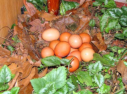 This morning I was throwing things out my window at chickens on the lawn! I threw my vitamin bottles, a paint brush, a rock, a bunch of other stuff. The damm chickens would not stop cockadoodling and I was trying to sleep! I found out one of the hens decided to start laying her eggs under a table right outside the bedroom window. For the last few mornings all I hear is this moaning and groaning and now the roaster joins her to "egg" her on along with a younger hen present to learn the tricks of the trade. Oh brother!!!