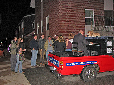 I thought the day was over and drove uptown for some Thai takeout. I had left my camera back at the digs as I had no plans to be having any interactions. Who knew so many people would appear with interest on the empty street in the dark. Five people got onto the truck to play. I returned to the digs over an hour later. I love this Traveling Piano gig.