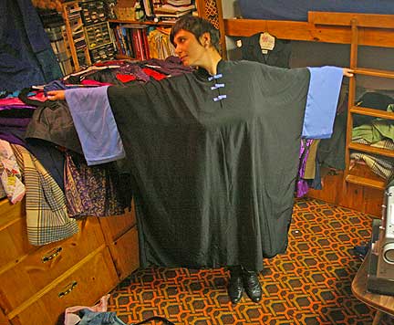 And Then... I found my friend Cor in the room above his garage exploring all the clothing material I had presented as a contribution to his "Stitch Uganda Together" cause. He had started to give the clothes away. That was not in my plan but reminded myself that even though I contributed with a specific purpose in mind... once I gave them away they were no longer mine to have any decisions about. I had not created any conditions about the exchange, they were a gift. The bottom line, I wanted it all to have value and respect. Cor's friend Vanessa became the day's value and respect. This beautiful woman, full of spirit, life, beauty and who loves her femininity, is completely uninhibited and inclusive with her nature. Vanessa spent the evening giving Cor and I a fashion show that was worth more than the value of all the clothes, the trip up here, the effort and expense, what more can I say? It was amazing fun! I was never really conscious of women's fashion before but I sure am now! Well, the exchange continued as Vanessa invited me to stay at her place for a few days. We went to her house which is in the middle of a renovation and my friends cleaned up a room for me, made a bed with table and lamp special bedsheet covers and just gave Bo and I the best that hospitality can offer. This experience is a great example of, "what goes around comes around" in keeping the desire for good attitude and conscious intent. The good stuff might not come around the way I expect but it always comes around and usually in an unexpected, surprisingly way which I love!