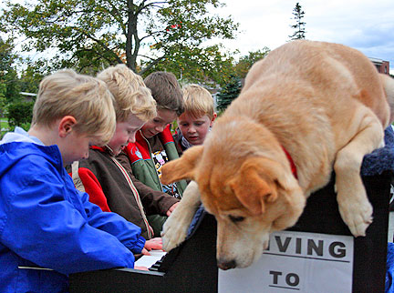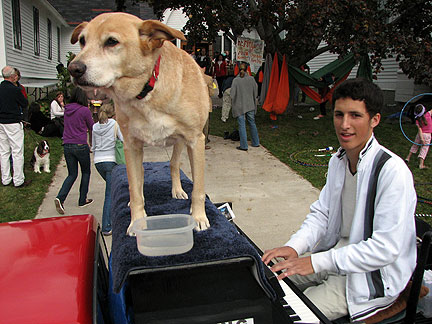 I was taking Bo for a walk around the block and ran into a dad with a few kids playing basketball. They went up to Bo and said hi. I told them he was a piano dog and they wanted to understand more. I asked the dad if they were going to be there for about fifteen minutes that I would go get the truck and show them. I introduced myself to the dad and gave everyone an informational flyer. It was a fun short time. It was one of the boys birthday so that made it even extra fun. The dad left with his son and one of the other boys told me his sister can also play the piano. I said, "lets give her a go at it." The house was about three hundred feet away, three houses down the street. They asked if they could jump into the back, I said sure. When we were in front of the house I told them they needed to check with their parents to make sure everything was ok and one guy asked me if his mom could also come. I said that was a great idea!