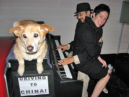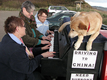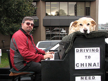 We unloaded the clothing material I had brought for Cor from truck and then made room in the garage to keep the truck out of the weather. it began to rain. Cor's sister came home with her boyfriend and as I went to close the garage door a typical Traveling Piano experience fell right into place. Cor's mom came out to join us. Later on Cor treated me to a concert. Melvin Seals the longest running keyboard player from Gerri Garcia's band The Grateful Dead, Melvin's band was in town playing. It was in a Knights of Columbus hall turned Chinese Cultural center and occasional concert venue. Before the concert we stopped in the center of town at a pre-party held by a friend of Cor and the pre-party turned into a pre-concert on the street with the Traveling Piano. Oh, what fun that was!