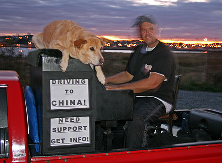 We drove to the top of signal hill which was just so much fun. I thought the truck would have trouble with the steep climb but it turned out easy. The local newspaper found us up at the top. All bases covered? People want to know what I am going to do, where I am going to be, my plans. The reply... I don't know, I'm going with a continuous flow of fun spontaneity, allowing my life to unfold minute by minute. This takes practice. I consciously toss out thoughts about my funding situation with the uncertain economy (the money from the sale of my home is not looking good right now) and the China part of this journey. I feel I need to stay the course with the first part and with China I need to just jump in with both feet onto a boat or plane with Bo, with or without the truck and go! Maybe I will buy a truck over there if my funding stays alive.