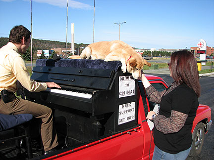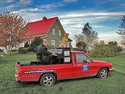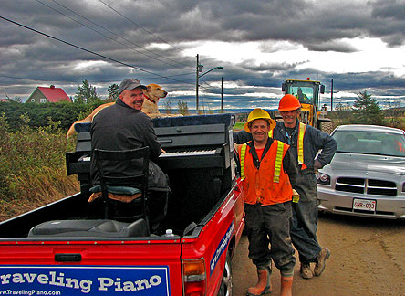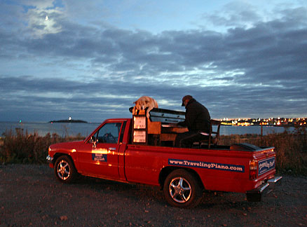 Strangers have been giving me money. I don't need to be playing music, I don't even need to be on or in the truck they just walk up to me and give it. This has happened at least twenty to thirty times. They either heard about the Traveling Piano word of mouth or from the radio interview that I did. How much are they giving to me? I think about how much as how fun it is not how much money it is. Not one person has handed me less than five bucks. I have not had the discomfort of when people tip or donate a dollar or two. When that happens in the states I usually feel like they are thinking, "this is what I am supposed to do," or "the guy needs a few bucks." Ugh. I know it is all good. I know, I know... even a quarter is a positive gesture. Ugh. With all the people who have been giving to me in Canada it feels like, "here let me contribute, I want you to keep going!" I am finding out the Maritime region of Canada has the least money and has a reputation for being the most giving region of Canada. Some people might sarcastically think "if they didn't give so much they wouldn't have the least amount of money." I think it may be that these Maritime givers are more content and ok with life, happier as a result from not being so tight with money.