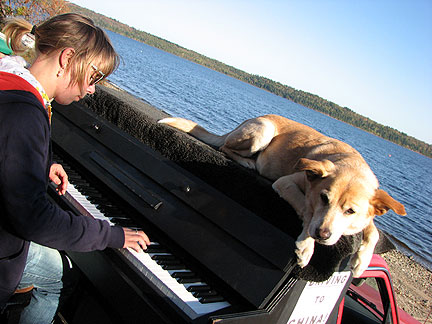 I have been experiencing wonderful synchronicities. For example, Diane who's cabin I am going to today tells me her son Andrew was on the phone this morning telling her about this Traveling Piano guy from Philadelphia, PA who he was listening to on the radio while driving home from work. While my interview was in progress, a friend who was also listening called telling him to turn on the radio and listen. Diane say to Andrew, "oh yea, he is coming to dinner today, everyone will be there." hahaha. Another one... One night I went to meet with a group of people in one town and then the next day I briefly met a girl named Heidi who was part of the same group but I met her in another town. When Heidi went to her group in the first town a few days later, they told her about the Traveling Piano and wished that she had been there. Heidi said that she had coincidentally met me the day before and had played on the piano. Heidi emailed me and I when I got back to her we realized that everyone, the group, her and I... had an incredible and powerfully private support bond in common.