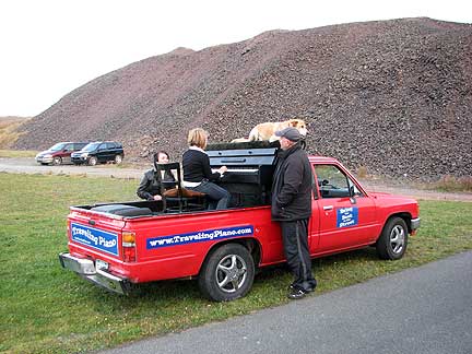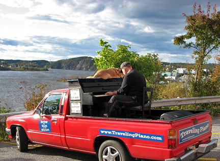 Along with many really cool people playing on the Traveling Piano truck a guy named Hedley found us and made my day buy inviting me into his house to play on his piano and then he came outside to play on mine. Hedley is a math teacher. Outside he played a Newfoundland folk song for me, a type if jig that really was a gift. The idea of musicians sharing music together and my being part of that concept is still new for me. It is a life experience, a feeling of being part of, allowing, having something to offer... that was beyond my Wildest of Dreams three years ago.