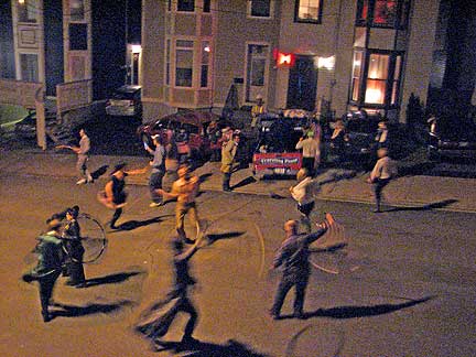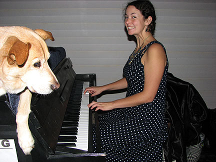 At night it was Vanessa's thirtieth birthday dance party. I sat outside her house with the Traveling Piano as a warm up. There were a lot of beautiful women there to keep me warm. This was a wild PaRtY! In the beginning I improvised music to the sounds of constant girlish giggles and laughter coming from inside the house. It was a very different improvisational experience from creating music with the roar of ocean waves. The culture of teens, twenties and now thirty year olds that I have been hanging with are very uninhibitedly playful, creative and imaginative with their lives.