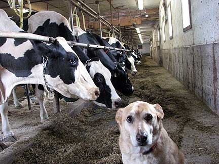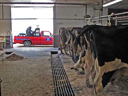 After driving down the street playing a few tunes for the construction workers who were putting in sewer lines I drove around town without any success in finding a place to create music. I really just wanted to be down on the farm so there I went. I had never before seen 150 cows getting milked, or helped to brush in feed, or sat and looked for cows in heat to inseminate, neither has Boner. Talk about stimulation! The smell of fermenting hay and cow poop was... STRONG! I had to go outside onto the Traveling Piano truck and manifest some music over what I was experiencing. That inspired Margo who was in a nearby house and is my friend Jeramie's sister to come outside and discover us. I was in musical meditation with my eyes closed. She was a pleasant surprise for me to discover when I opened my eyes.