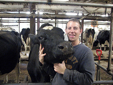 Jeremie 's house is so "out there" that the address does not come up on Goggle, GPS or my Magellan Roadmate. When I found the place, I was instantly happy. In front of me stood a beautifully luxurious yet modest farmhouse with an amazing red roof. In the moment of meeting Jeremie, I knew I was supposed to be there and we would become good friends. After meeting his mom and dad Phyllis and Leon, I knew there was there no other reason for my being there than for our own personal enjoyment and sharing of fun, friendship and respect with each other. I felt a genuine welcome, an openness with these Frenglish speaking people. They are third generation dairy farmers working a farm five miles long and a quarter mile wide. They have two dogs and a (cat) and Bo was instantly ok with all of them. He even allowed the cat to smell his butt. The Gaudet's have had visitors stay with them in the past and this is the kind of hosts I found... They take off their shoes when they come in the house but did not tell me I needed to, their dogs must stay downstairs at night but Boner can come up with me to stay in my room, they made it clear the house and everything in it was for my use with no fear or concern attached and gave me a bed to die for with flannel sheets purchased for my visit. Jeremie is a cartographer (mapping degree), farmer, a passionate learner and traveler. He said to me, if you want to go somewhere you cannot think about it too much you need to just jump into it and go. Where have I heard that before, about China?