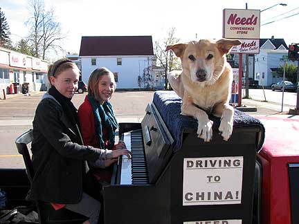 I arrived at my hosts house and set up the truck first thing with Bo on top of the piano to show them how behaved and non-threatening he is. Elizabeth and her husband Ross, both family doctors with a set of quadruplet teens in college, Justin, Rena, Sara who were home and Alex who I did not get to meet. They welcomed us even though they are very uneasy with strange dogs. Of course, Boner won them over immediately. I found a very gracious and involved family. Having children never stopped this husband and wife team from traveling to different places around the world, they took the quadruplets with them. We had dinner with another first time guest Bonny from Beijing, China. Bonnie is a local college student and a pianist who played for us some classical piano as well as her own compositions. I wondered if the families sense of inclusiveness lead them to invite Bonny on my behalf considering my journey to China, whether it was just a coincidence or the law of attraction. Boony suggested I just go to China and develop my contacts there. This is a message I keep hearing strong.