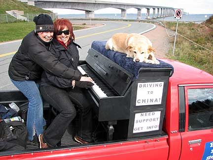 To Prince Edward we go. Where on the island I had no idea. I had to cross the Confederation bridge to get there. This nine mile bridge costs over $4.00 a mile to cross! I found a few, fun travelers buy the side of the road before crossing and we all stopped for some music. I was told that it took only two hours to drive the entire island's width so I figured I could easily scope the area in a day. The problem was that I was not.. thinking two hours forward and then two hours back. I was also visualizing two hours length while thinking width. It is a long island. I made a phone call to meet with some new people, passed through Charlottetown. After four hours of driving I reached my destination. The house was at the farthest most tippy east end of the island. It was a good thing I had started in the middle. I should have looked at a map before attempting the ride. The travel was with short and deep hills that felt like I was on a roller coaster ride with the Traveling Piano.