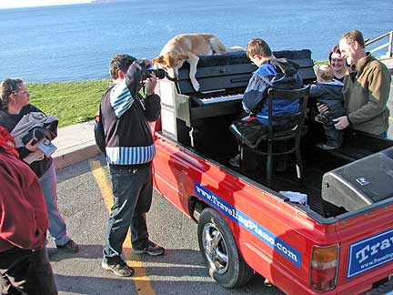 In the afternoon I drove to Topsail Beach that provided a beautiful sweeping ocean overlook. The piano keys began to stick and then just not work. I would push them down and there they would stay. I thought, "your here, just play anyway." I did and as a result met many interesting people who jumped onto the Traveling Piano truck, specifically a refugee from Uzbekistan which is above Afghanistan, people from Asia, a few African children, a hot girl from Russia, a wonderful female piano player from the Ukraine and people from a few other areas. Up to this point all I had seen here in Newfoundland were white people!