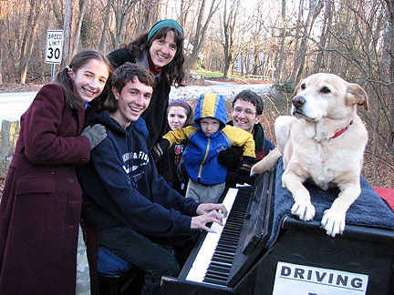 Westford, Massachusetts... where is that, where am I? I just turned on the GPS and began to drive. It did not work for the first half hour because it was frozen. I am staying with Jon, his wife Lori and their children, Mark, Lisa, Anna and Jared. Another daughter Sara is off away at college. Boner is laying by a fireplace. I am worrying about the Traveling Piano being out in the cold as I would Boner being out in the cold. My sponge yoga mat in the truck bed is frozen solid.