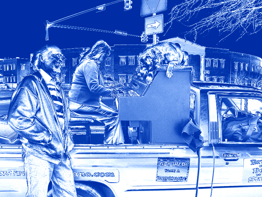 Full moon. It s affecting Boner more than I. He's frisky. My friend Charlie's living room was eighty nine degrees hot when i woke up this morning. It is in the middle of winter and Charley has been gathering sap from the trees on his farm to create maple syrup on his wood burning stove. I ditched my friend from the Traveling Piano producing project, it was not working between us. I love him dearly but there was too much emotional relating crap getting in the way of the work. That will hurt financially, me. Tomorrow I will purchase a new piano for the truck. I found a new way to treat the Traveling Piano photos while archiving and working in photoshop... todays photo is an example.