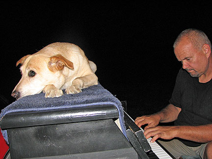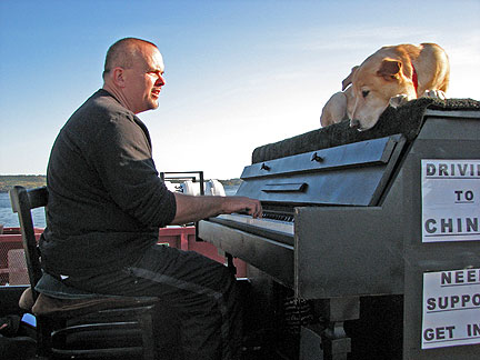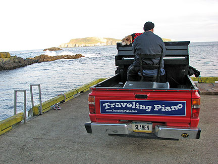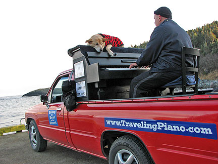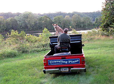 The entire day was spent going through picture files and creating photo's to publish from my archive. I can't seem to let it sink into my head fully that the present Traveling Piano look will no longer be... in a very short time. I have had the same truck for twenty-two years. The new truck is similar but not the same. All the pictures I have used will soon be outdated. I am getting ready to upload them all to the internet. I have enough for a good picutre book or two but now is not the time for that. Now is the time to share freely. I am feverishly spreading Bo and my relationship throughout the world to the best of my ability. Between the two of us and all the people who have participated in the dream to date... we have some swell visual memories!