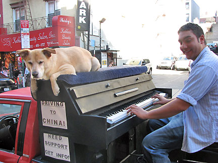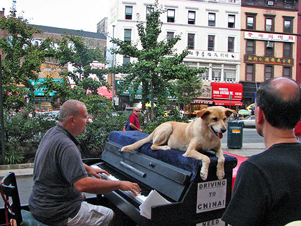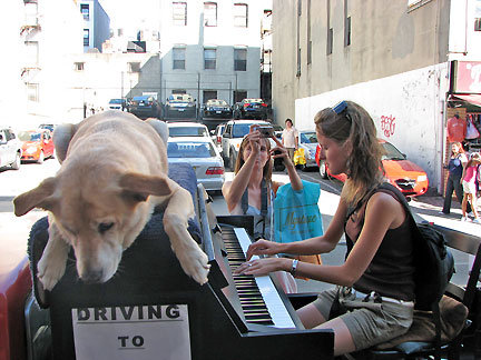 My life is saturated with creating my photo archives and posting it all, my life is consumed with it but I know it is right to do. Thank god I am in a position to be able to do it. When I am finished a break will be needed. I am going to be real Traveling Piano-ed out! Bo and I took a walk today and sat by the rushing waters of a nearby creek. He fell into the water trying to jump the rocks. As an old guy who cannot see and jump very well anymore, his senses are not as sharp, we both just laughed it off as play and I dried him off once we got to the truck. The pictures I have been posting are from the summer in New York City and around everywhere. They are all never before posted pictures. When I think back to all the work I did last year in trying to raise funds well... I just try not to think back because it can be very discouraging. Everything now is on faith that I must continue to experience joy and think about what I have to offer for the world... and to do that. I am.